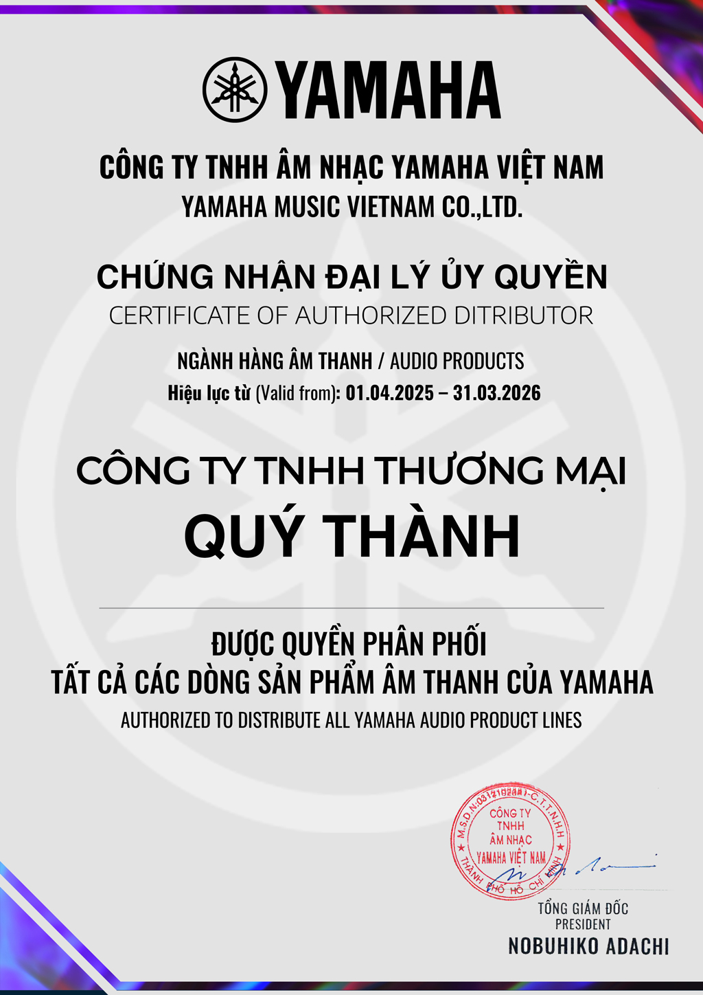 QUÝ THÀNH MUSIC - ĐẠI LÝ CHÍNH THỨC YAMAHA NĂM 2025-2026